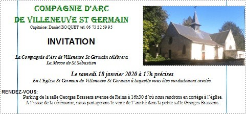 Il est de coutume pour la traditionnelle fête de St Sébastien, notre patron, de se réunir à 16h30 en tenue de Cie à la petite salle du foyer Culturel Av de Reims, de la nous partons en cortège jusqu'à l'église St Germain qui se trouve à 100m.
