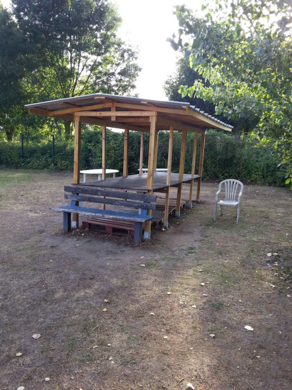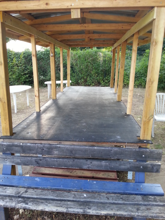 La conception et la réalisation furent l’œuvre de Daniel et Bernard, qui pendant un mois, sous les fortes chaleurs, ont travaillé d’arrache pied pour finaliser cet abri avant les premières pluies de ces derniers jours.
